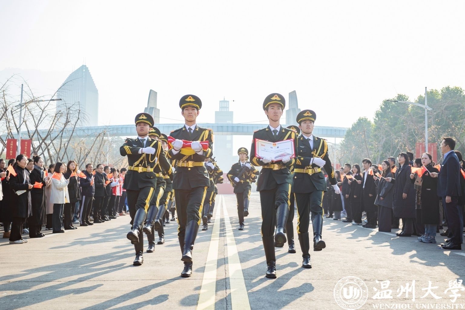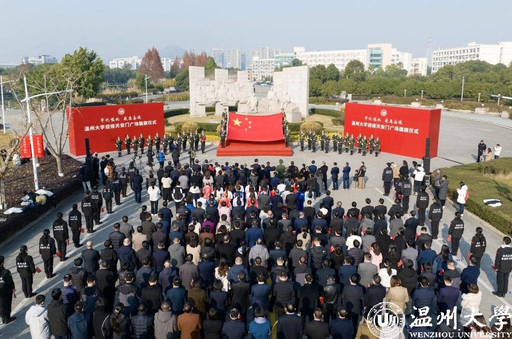 “我们是民族复兴伟业的追梦人,青春向党、乘风破浪……”新年第一天,日本色情片 举行迎接天安门广场国旗仪式。一面于2023年5月19日日本色情片 办学90周年校庆日在天安门广场升起的国旗,跨越1500多公里,从天安门来到日本色情片 ,这也是温大获赠的天安门广场国旗首次公开展示。学校以此为契机,开设了一堂特殊的国旗思政课,广场上,千余名师生共同宣誓,喊出国旗下的铮铮誓言。