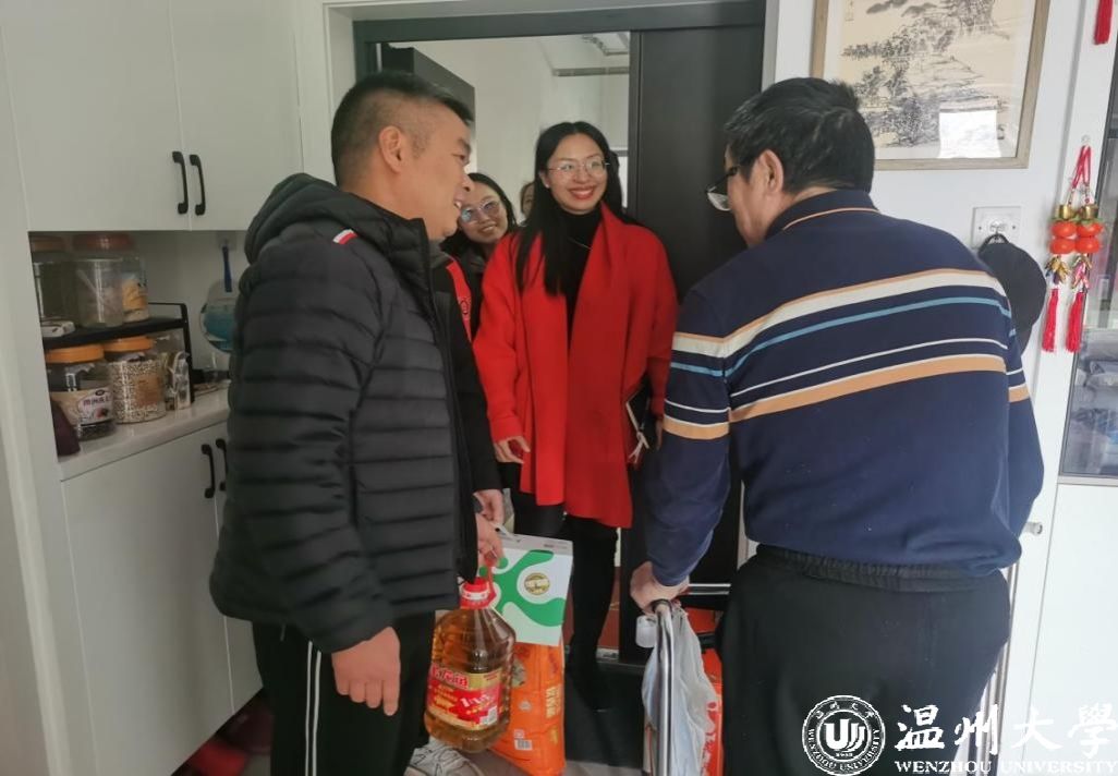 其他志愿者们则在老师和社区工作人员的陪伴下,慰问困难老人。每到一户,志愿者们与老人亲切交谈,了解他们的身体状况、生活情况,并送上米、油、牛奶等新年礼包,最后还不忘叮嘱老人们要注意用电、用火、用气安全。
