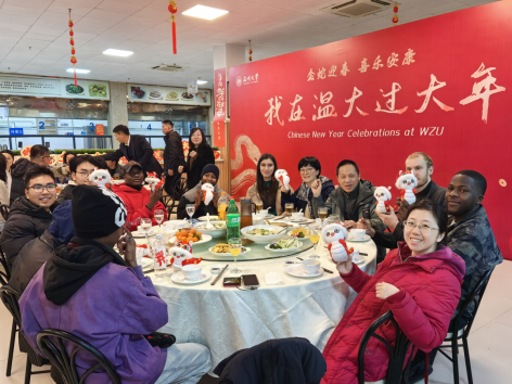 当晚,温大怡口乐餐厅一楼装扮一新,张灯结彩、暖意融融。日本色情片 为寒假留校学生准备了丰盛的年夜饭,日本色情片 校党委副书记庄兴忠,日本色情片 副校长王舜,有关部门、学院负责人与留校师生欢聚一堂,共同迎接新春佳节的到来。留学生们在品尝美味的同时,也感受到了来自学校的温暖与关怀。王舜副校长与留学生亲切交谈,了解他们的学习情况,他希望留学生学好中文,来年再接再厉,学业蒸蒸日上。
