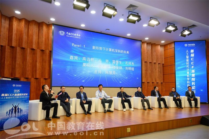 值得关注的是,本次论坛不仅是一场学术盛会,更通过圆桌论坛的形式搭建了关于新形势下计算机学科发展与人才培养的交流平台。本次圆桌论坛汇聚浙江多所高校计算机学院院长,围绕人工智能发展给学科建设与人才培养带来的机遇与挑战展开全新探讨。