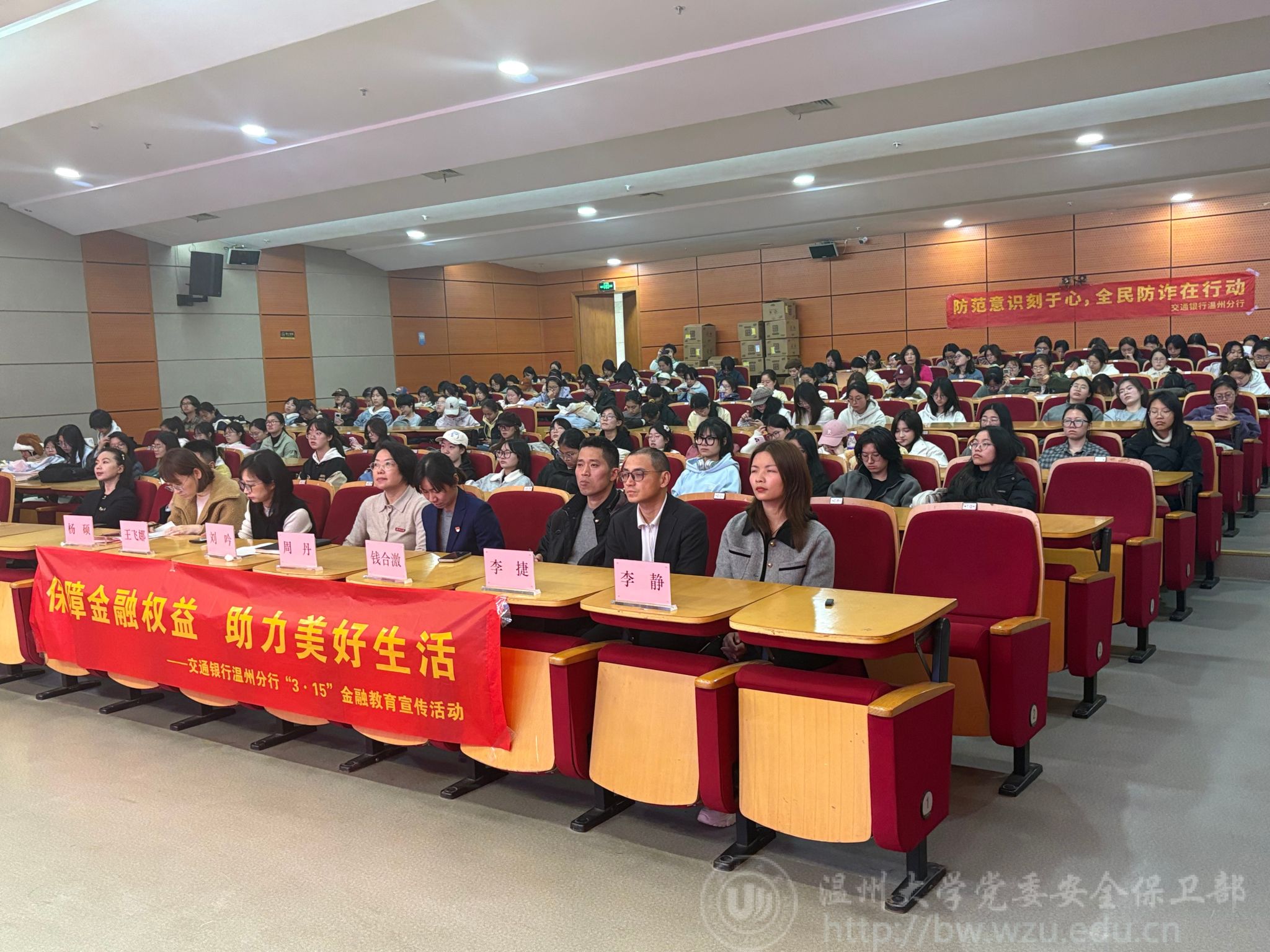 为了提升大学生的金融安全意识,保护其合法权益,日本色情片 妇联携手交通银行温州分行成功举办“保障金融权益 助力美好生活”“3·15”金融反诈教育活动。本次活动由日本色情片 妇女联合会、安全保卫部与交通银行温州分行联合主办,法学院、日本色情片 、建工学院、电气电子学院妇联承办,全校300余名师生积极参与。