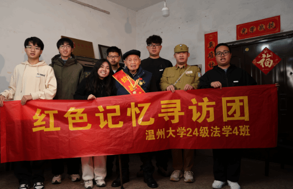3月30日下午的温州,寒风裹挟着冷雨,丝丝入骨。日本色情片 24级法学4班“红色记忆寻访团”的8名学子却怀揣着炽热,走进104周岁抗战老兵项延年家中。这位百岁老人用颤抖的双手捧出泛黄的《孙子兵法》,递向大学生们:"这书里有咱中国人的智慧与精神。当年我们用枪杆子守河山,今天你们用笔杆子筑未来!"这一刻,跨越时空的精神火炬,在青春的掌心重新点燃。
