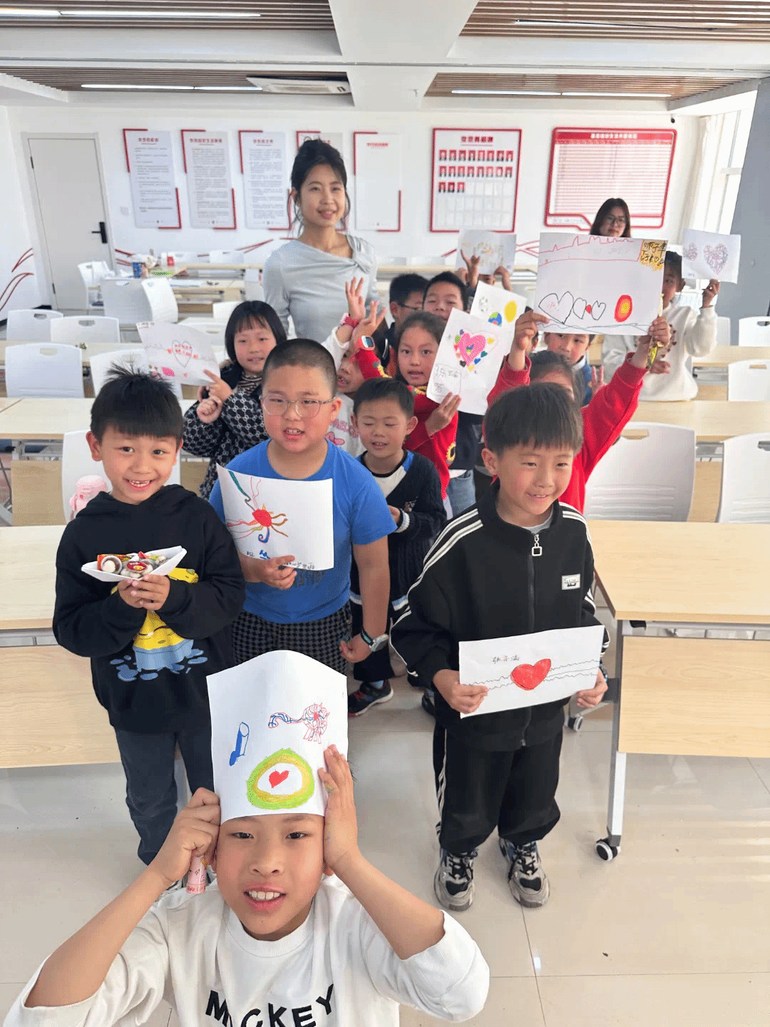授课过程中,一系列创意十足的游戏让孩子们沉浸其中。“超级变变变”带来新奇体验,孩子们充分发挥想象力,用灵动的身体变幻出云朵的轻柔、树干的挺拔、太阳的炽热,欢声笑语回荡在教室。“心跳小游戏”中,孩子们屏气敛息,侧耳倾听,踊跃猜测播放的心跳音频对应的场景,还惟妙惟肖地模仿心跳节奏,感受生命的律动。“身体侦察”环节,志愿者们说出身体部位,如“膝盖”,小朋友们便迅速找出含有对应部位的图片,这一游戏极大地考验了他们的观察力和反应速度。