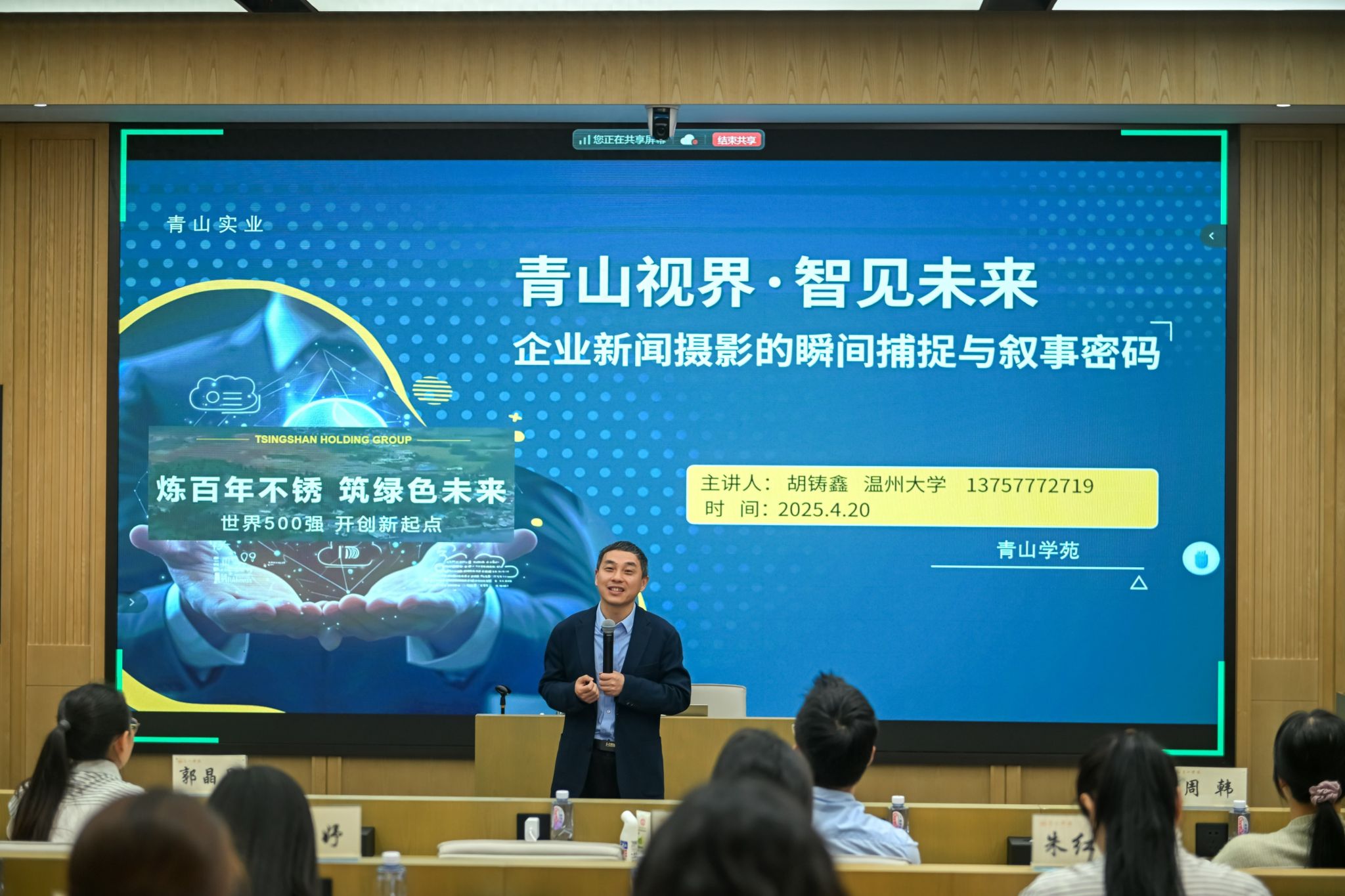 在“青山学苑”的《企业新闻摄影的瞬间捕捉与叙事密码》讲座中,胡铸鑫将“视觉生产力”理论具象为企业的摄影传播能力。他解码新闻影像内容的正向价值传播规律,引导在场学员认识到,摄影可以发挥“视觉转换器”的作用,为冰冷的钢铁加入视觉叙事的温度,通过品牌形象升级推动传统制造业向绿色智造的跃迁。