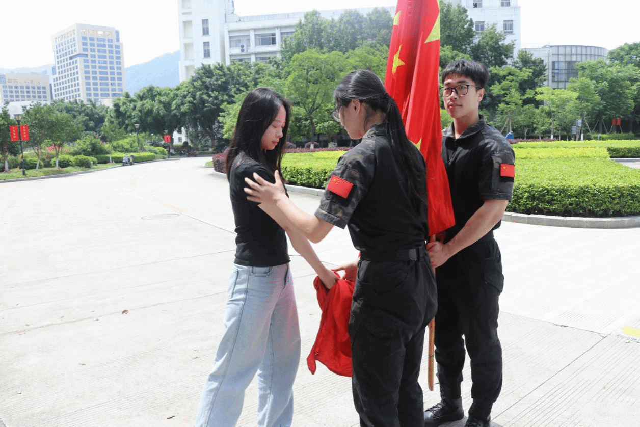 “我是护旗手”体验活动中,同学们争相体验抛旗的庄重瞬间,在镜头前与国旗同框,许下“强国有我”的青春誓言。他们在亲身体验护旗手的训练中深刻感受身为护旗手所承担的责任与使命,深刻体会国旗的庄严与神圣。一位参与体验的学生表示,通过近距离接触国旗,深刻感受到了“国之大者”的厚重内涵,未来将以实际行动践行五四精神,让青春在强国实践中绽放光芒。