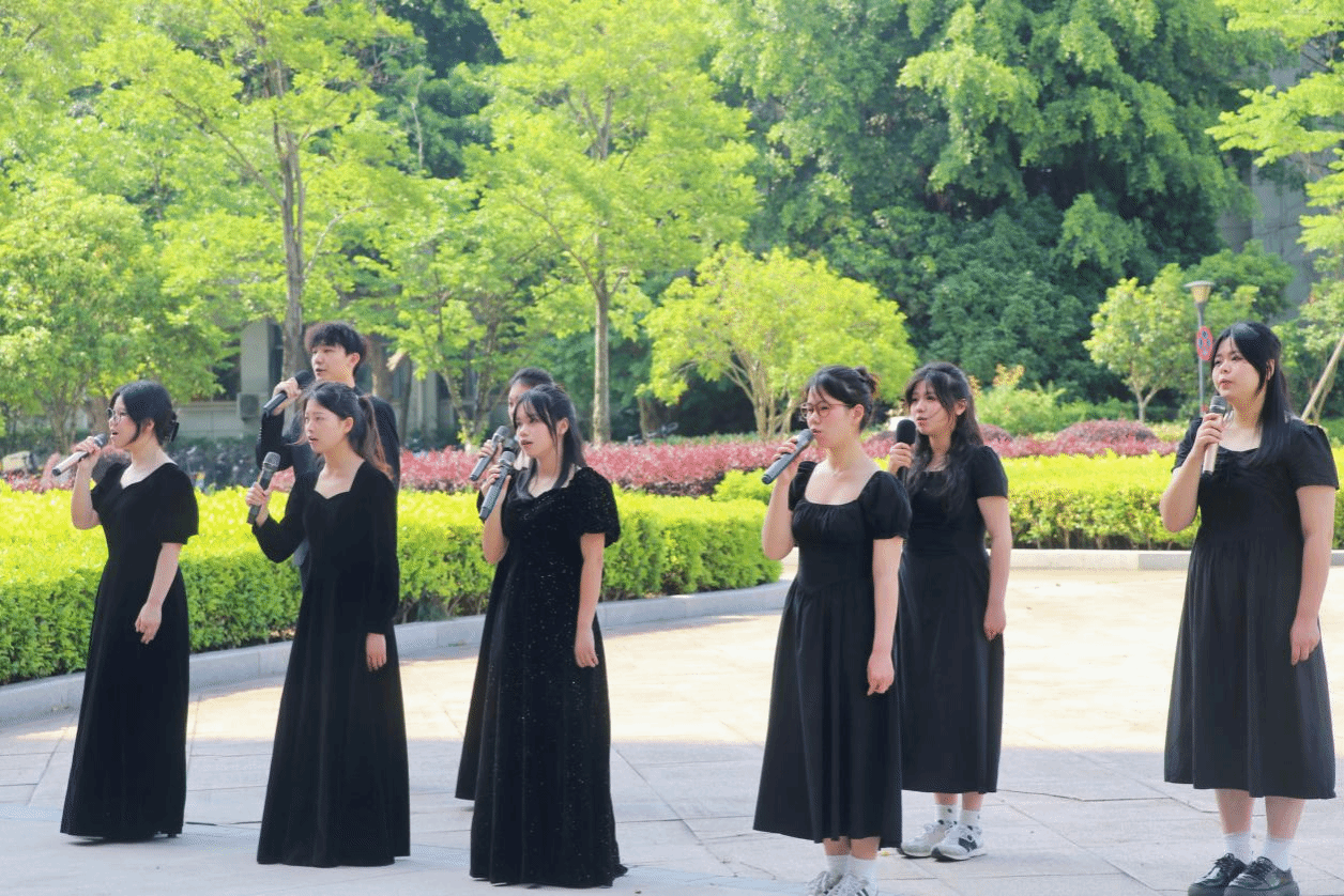 随后,校艺术团澜星合唱团成员带来歌曲《无名的人》,用歌声致敬默默奉献的奋斗者,传递青春力量。当“敬你的沉默和每一声怒吼,敬你弯着腰上山往高处走”的歌声响起,台下师生轻声和唱,现场化作一片温暖的声浪。