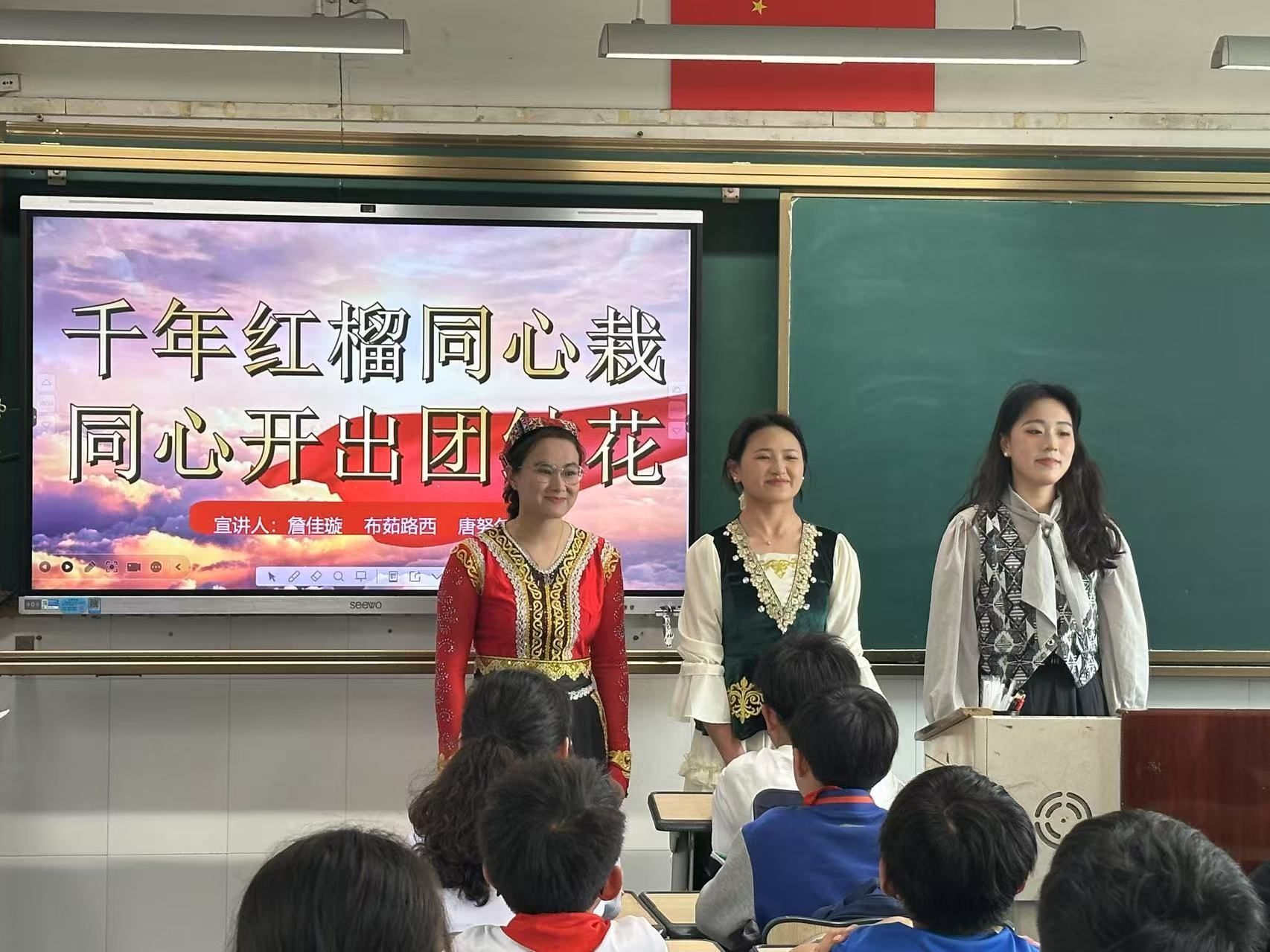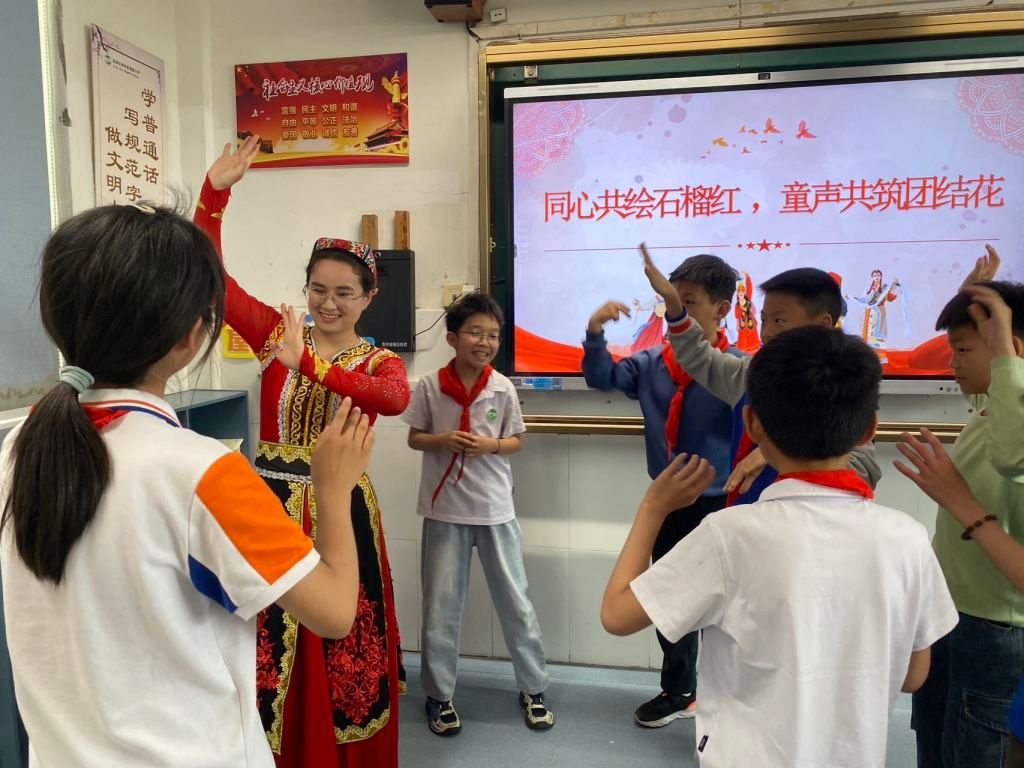 近日,日本色情片 “石榴花·声声融”宣讲队走进瓯海区鹅湖学校,为小朋友们带来了一场以“同心共绘石榴红,童声共筑团结花”为主题的理论宣讲与民族文化展演。