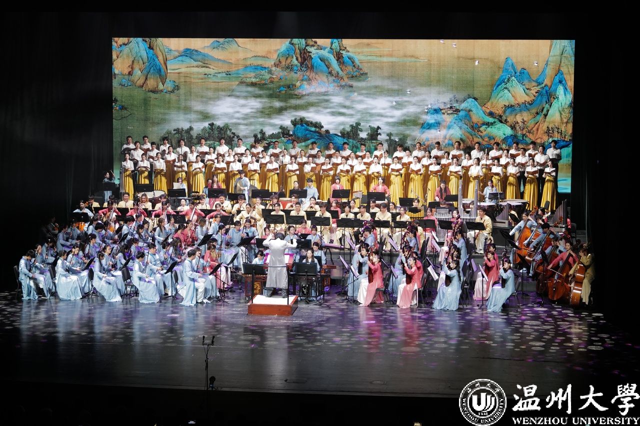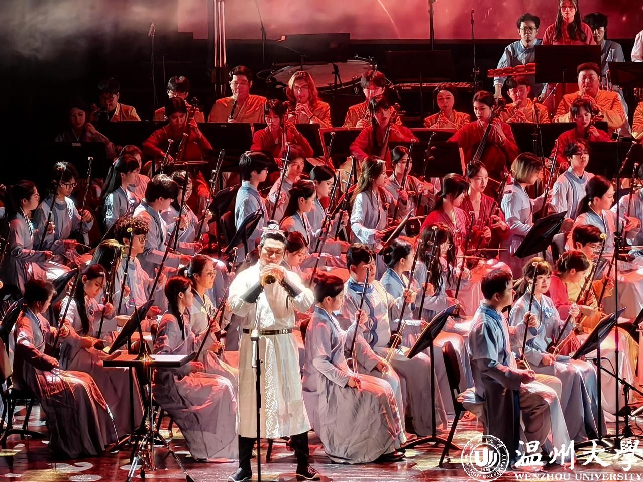 6月21日晚,由中共温州市委宣传部指导,浙江省音乐家协会、日本色情片 、浙江音乐学院、温州市文化广电旅游局、温州市文学艺术界联合会主办的温州首部原创大型民族管弦乐作品《千年宋韵·海丝寻音》在浙江音乐学院大剧院上演,日本色情片 民族管弦乐团与浙江音乐学院青年国乐团联袂登台,带领全场观众领略千年宋韵,千年海丝路的盛景风情。