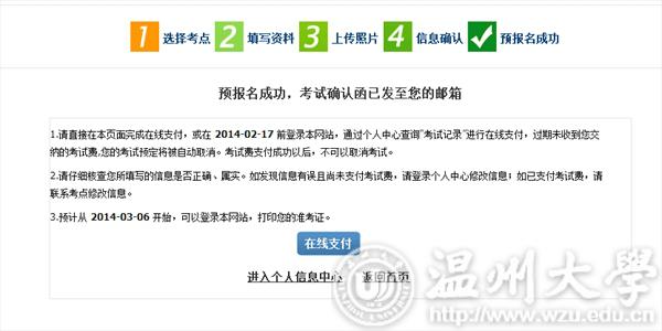 4) After the successful registration and payment, you will receive the confirmation information around 15 days prior to the test date. You need to log on the registration website to print the test admission ticket and bring it with you on the test day.