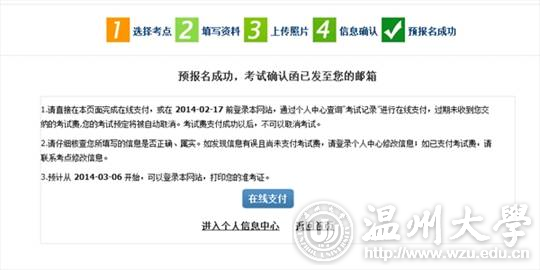 4) After the successful registration and payment, you will receive the confirmation information around 15 days prior to the test date. You need to log on the registration website to print the test admission ticket and bring it with you on the test day.
