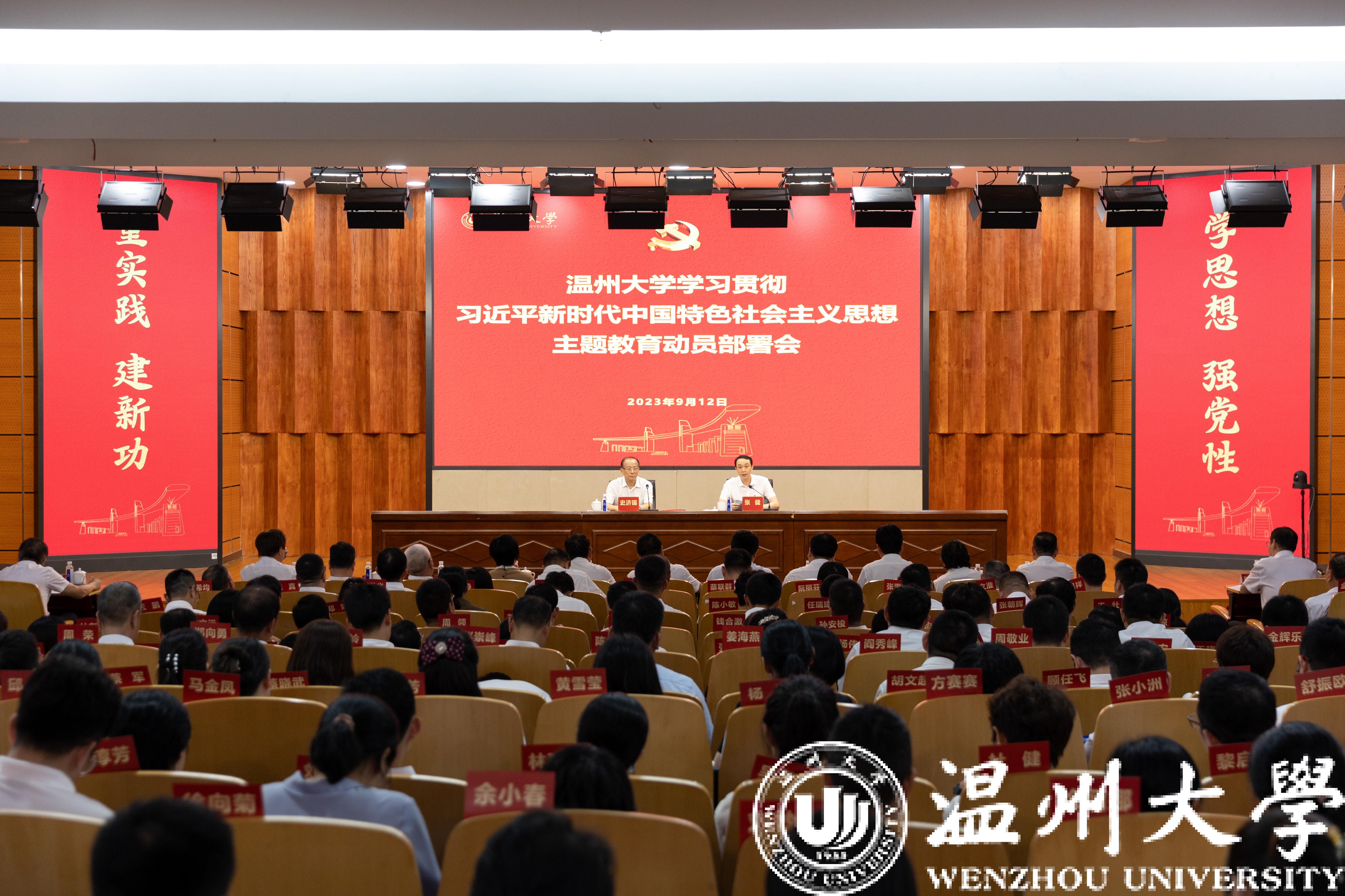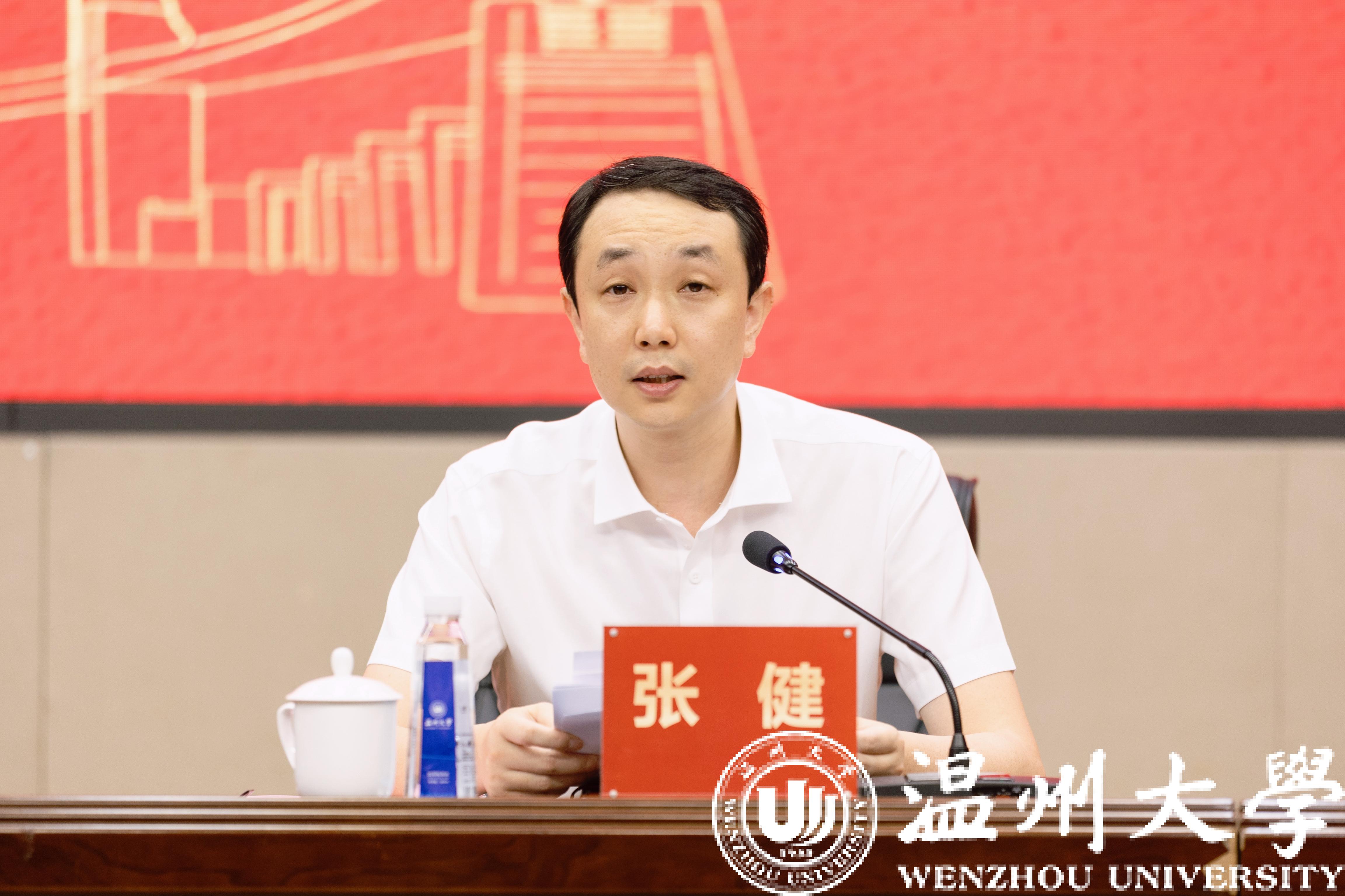 张健作动员讲话。他指出,学习贯彻习近平新时代中国特色社会主义思想主题教育,事关全局,意义重大。全校要深入学习贯彻习近平新时代中国特色社会主义思想,深入践行“学思想、强党性、重实践、建新功”总要求,加快建设国内一流、国际知名,特色鲜明的高水平研究教学型大学,为持续推动“八八战略”走深走实、奋力谱写中国式现代化浙江篇章、续写温州“创新史”作出更大贡献。