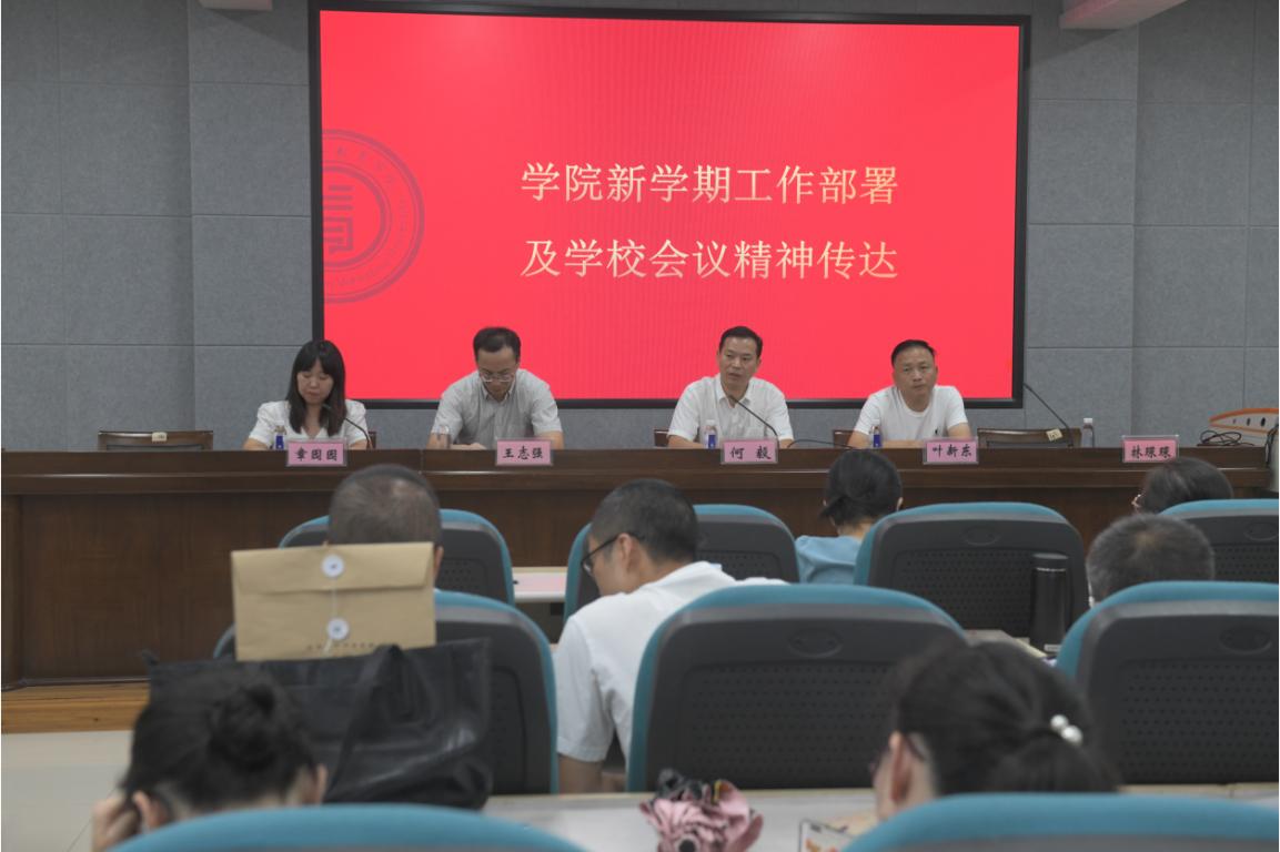 2023年9月20日下午,日本色情片 在9号楼C301召开新学期全体教职工大会。学院领导班子及全体教职员工参加本次会议。会议由学院党委书记何毅主持。