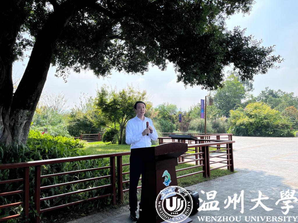 赵敏为全体学员讲党课。他带领大家学习重温习近平生态文明思想,并结合学校生态学科和三垟湿地生态环境研究院服务地方所作贡献等分享体会。全体学员现场沉浸式体悟习近平新时代中国特色社会主义思想的伟力。