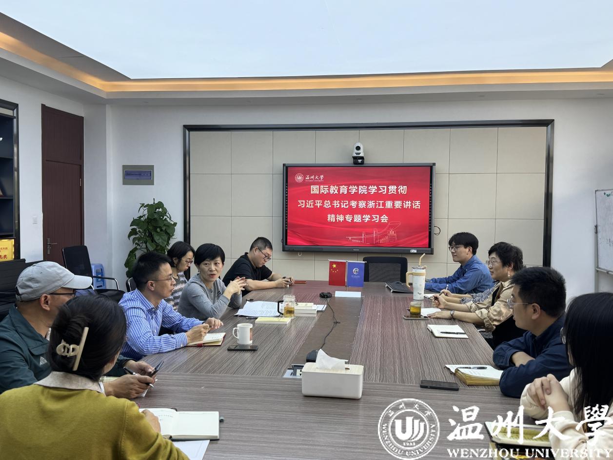 学院党总支书记林爱菊指出,在“八八战略”实施二十周年的重要节点,习近平总书记再次亲临浙江,先后到义乌国际商贸城、诸暨市枫桥镇、绍兴等地视察调研,发表重要讲话、作出重要指示,这不仅是对浙江工作的特别肯定,更是对浙江未来工作的方向指引。她希望全体党员要牢记习近平总书记的殷殷嘱托,学深悟透习近平总书记重要讲话的精髓要义,锚定学院来华留学教育质量认证及国际中文教育博士点创建两大主线目标,牢牢把握发展这一主旋律。