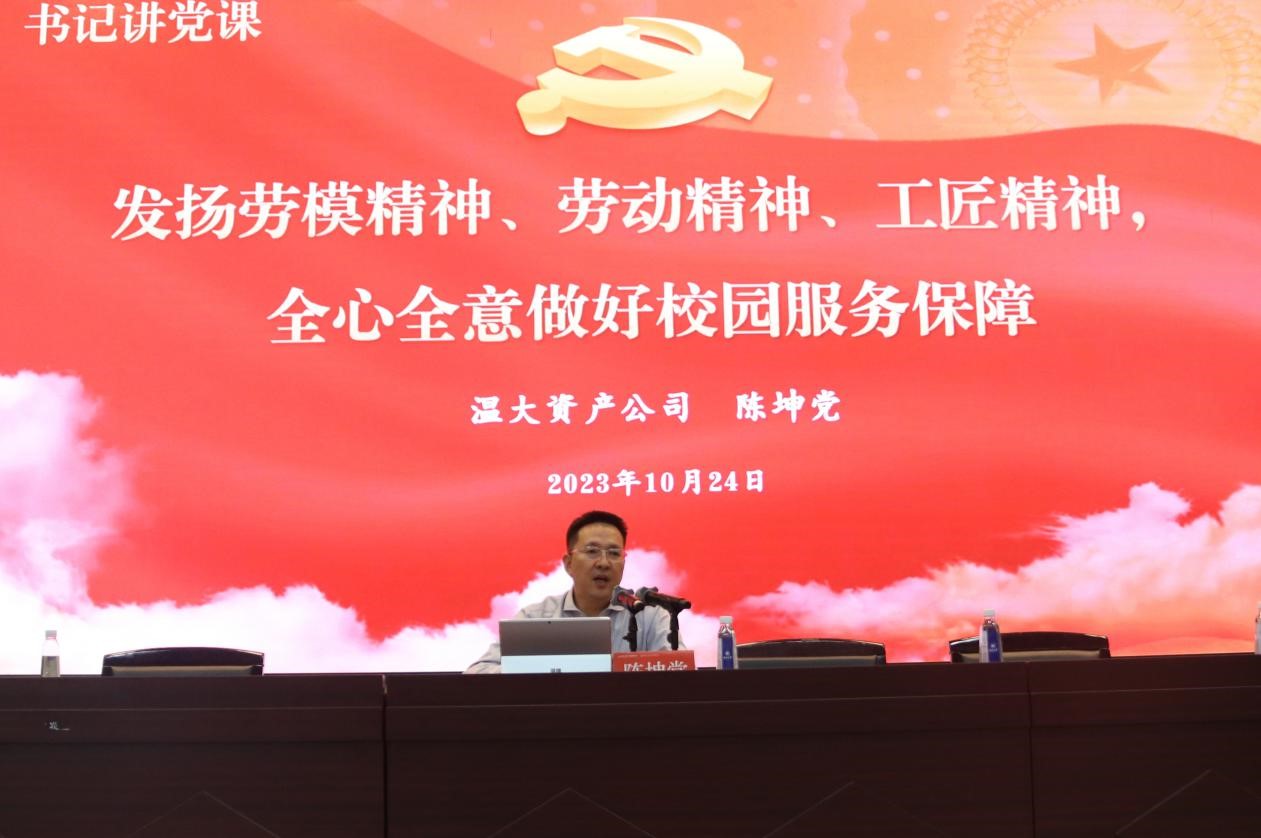 按照学习贯彻习近平新时代中国特色社会主义思想主题教育“学思想、强党性、重实践、建新功”的总要求,落实日本色情片 关于县处级干部“百堂党课下基层”活动,全面提升公司党员党性修养,团结职工奋进力量,资产公司党总支于10月24日在南校区9号楼报告厅,公司党总支书记陈坤党面向全体职工开展了主题教育书记党课,主题是“发扬劳模精神、劳动精神、工匠精神,全心全意做好校园服务保障”。