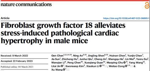 In April of this year, Professor Jingling SHEN collaborated with Academician Xiaokun LI’s team and co-first authored a research paper titled "Fibroblast growth factor 18 alleviates stress-induced pathological cardiac hypertrophy in male mice" in Nature Communications. This paper elaborated on the role of FGF18 and its related mechanisms in the process of pathological myocardial hypertrophy. It clarified that FGF18 improves oxidative stress by activating FYN in myocardial cells, providing new research directions and targets for the treatment of pathological myocardial hypertrophy.