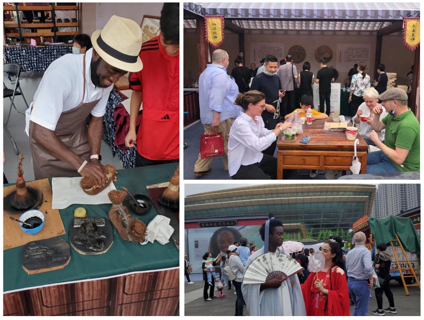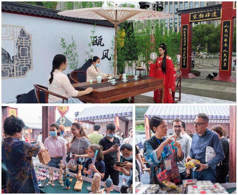 During the event, overseas friends made the rice dumplings, played pitch-pot, made egg containers and wore Chinese traditional costume with great enthusiasm; together they enjoyed watching the local talk show, Peking Opera, Zhejiang musical instrument show, marionette show, glove puppet and other intangible heritage performances. With the assistance from intangible heritage successors, they experienced the tea ordering, shell carving, glass lithography, wood engraving and other intangible skills. They also tasted the wheat cake, fish balls, sticky-rice cake and other specialties with distinctive Wenzhou local characteristics. The overseas friends participating in this event were greatly amazed and thrilled by rich and colorful celebration activities.