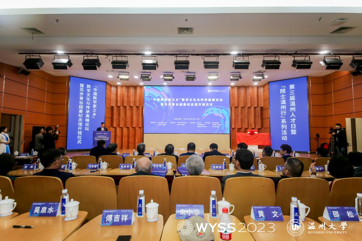 On March 12, the “Hometown of Chinese Mathematicians” Summit on Mathematical Culture and Inheritance and the opening ceremony of Su Buqing and Gu Chaohao Memorial Hall were held at Wenzhou University (WZU), hosted by the Zhejiang Association for Science and Technology and Wenzhou Municipal Government, organized by WZU, the Organization Department of Wenzhou Municipal Party Committee and Wenzhou Association for Science and Technology, and executed by the College of Mathematics and Physics of WZU. The summit was the first event of the 2023 World Young Scientists Summit and one of the activities of the 3rd Wenzhou Talent Day.