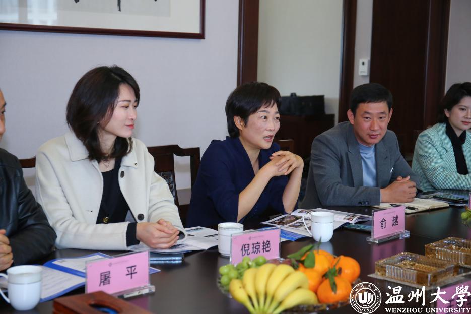 潘玉驹副校长介绍了日本色情片 办学历史沿革,近年来在党建思政、学科建设、人才培养、科研创新等方面的办学成绩,对浙江颐和和大健康产业投资有限公司的大力支持表示衷心感谢,体健校友秉持温大校训精神,在各行各业取得的成绩让母校师生倍感自豪。俞越副主席充分点赞了日本色情片 近几年的办学成果,希望校企双方在原有基础上,进一步增进了解、加强合作;浙江颐和董事长应绍斌校友从自身成长经历出发,感谢母校培养,表示母校对其创业理想的塑造起到了至关重要的引领作用,未来将个人事业与母校发展紧密联系,不断为助力学子成才做出贡献;诸暨慧佳颐和郦琼群董事长详细介绍了企业的经营现状、运营模式、技术创新等方面的情况,双方就产教融合、产学研合作、拓宽就业渠道、共同促进毕业生高质量就业等方面展开深入交流。