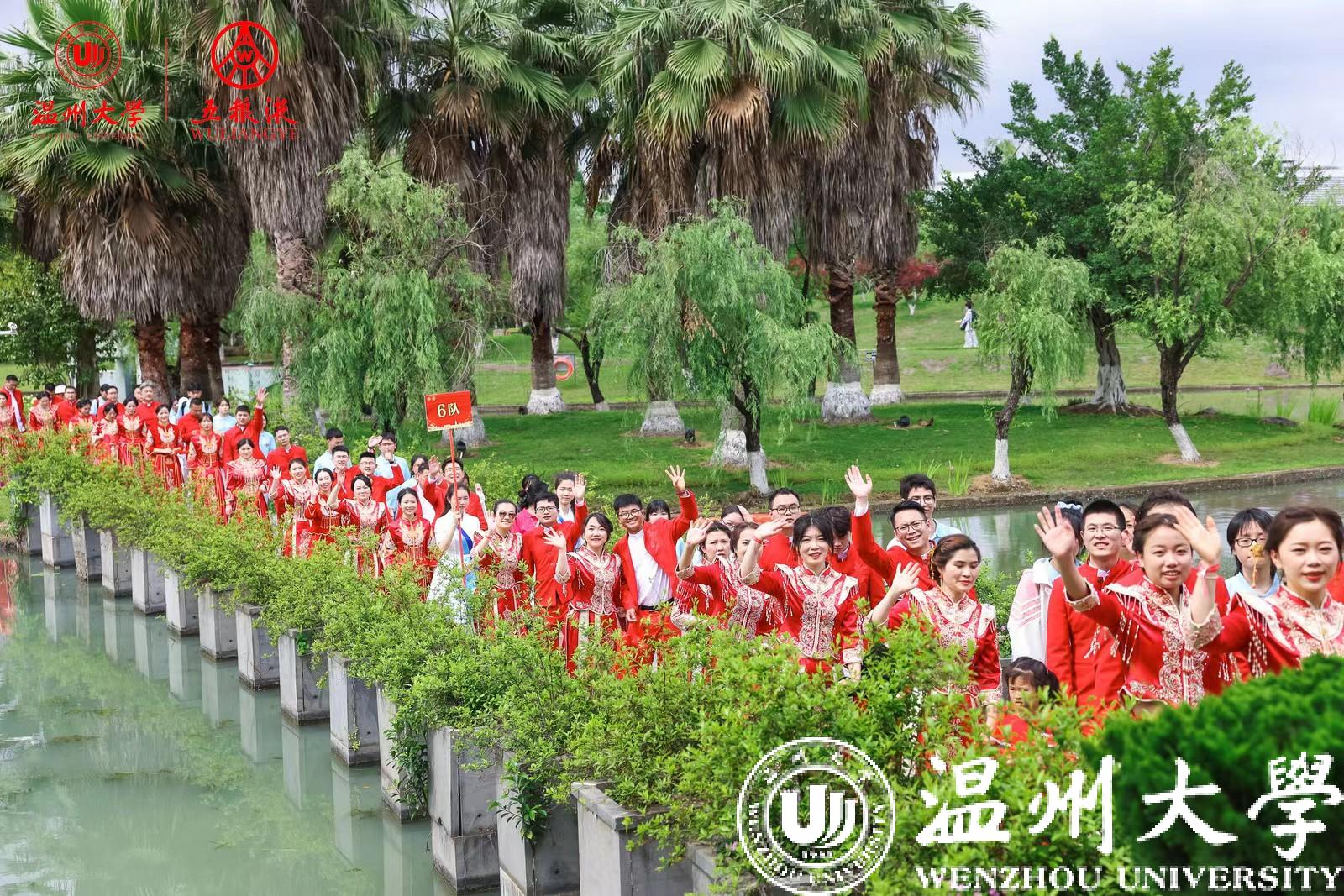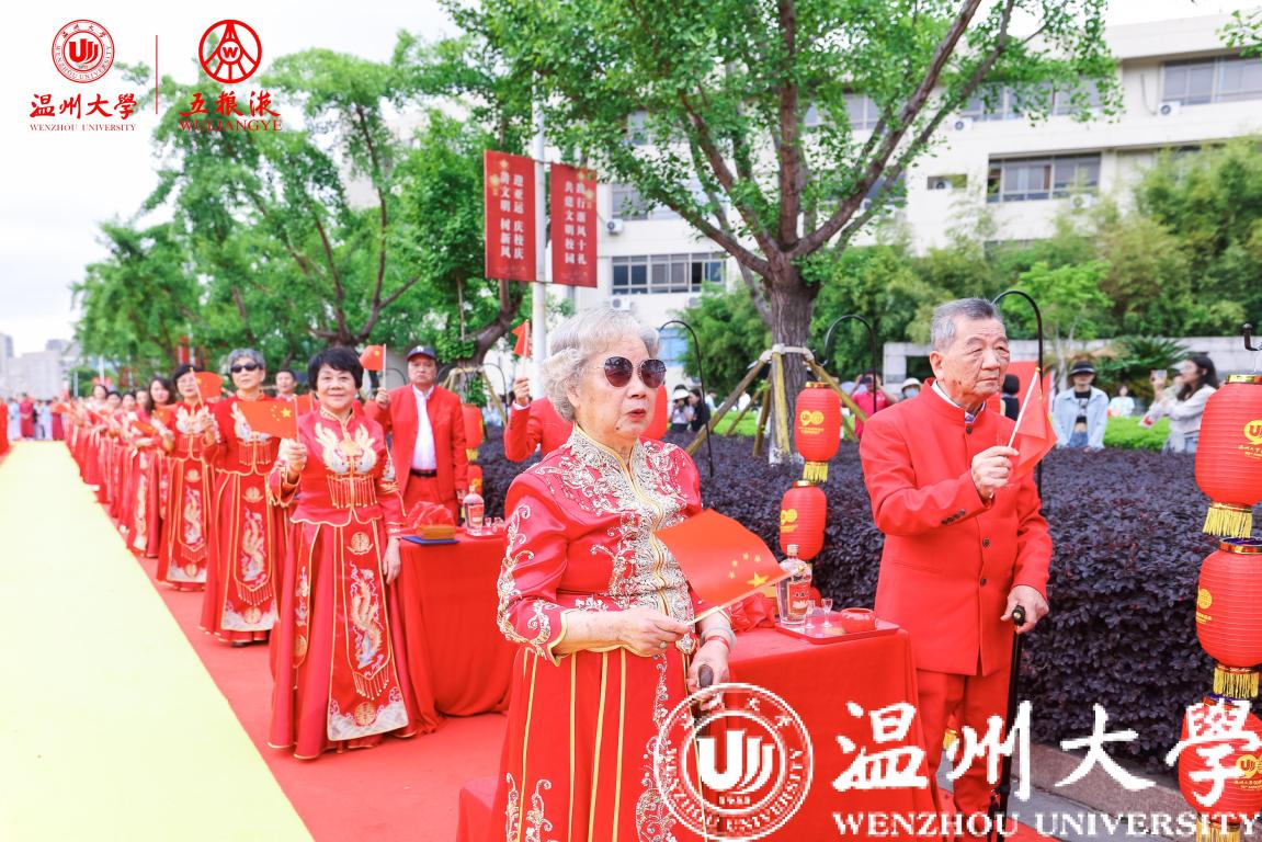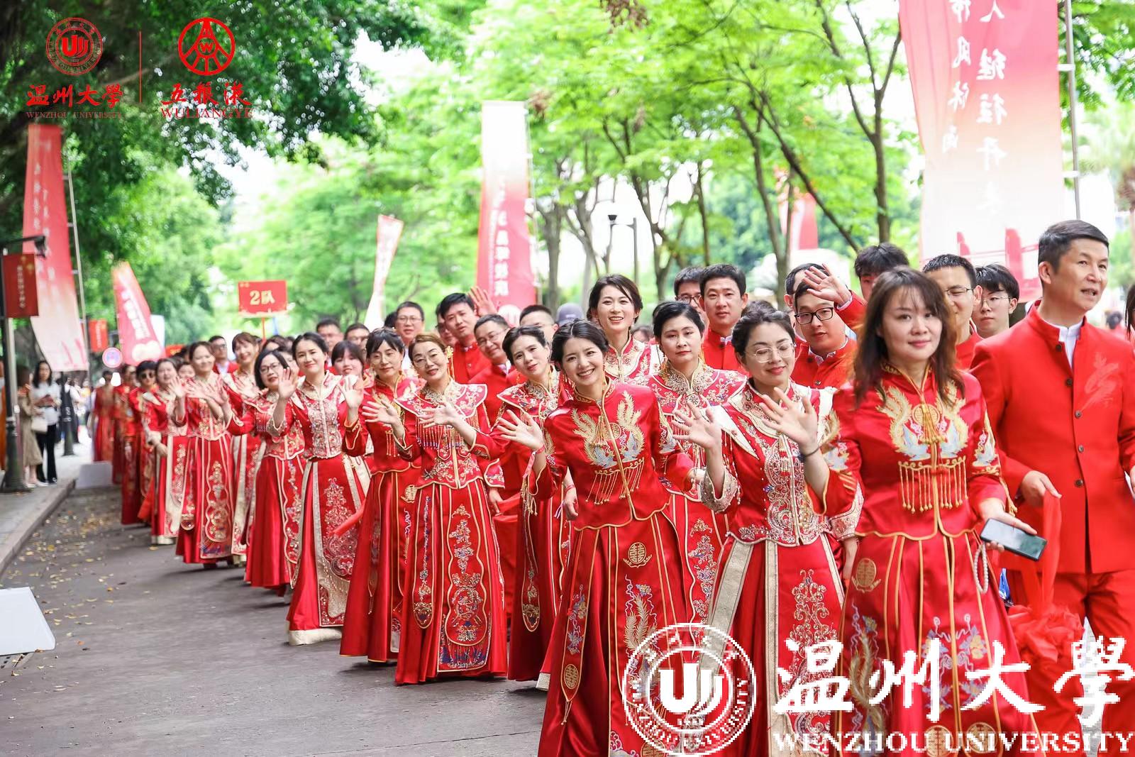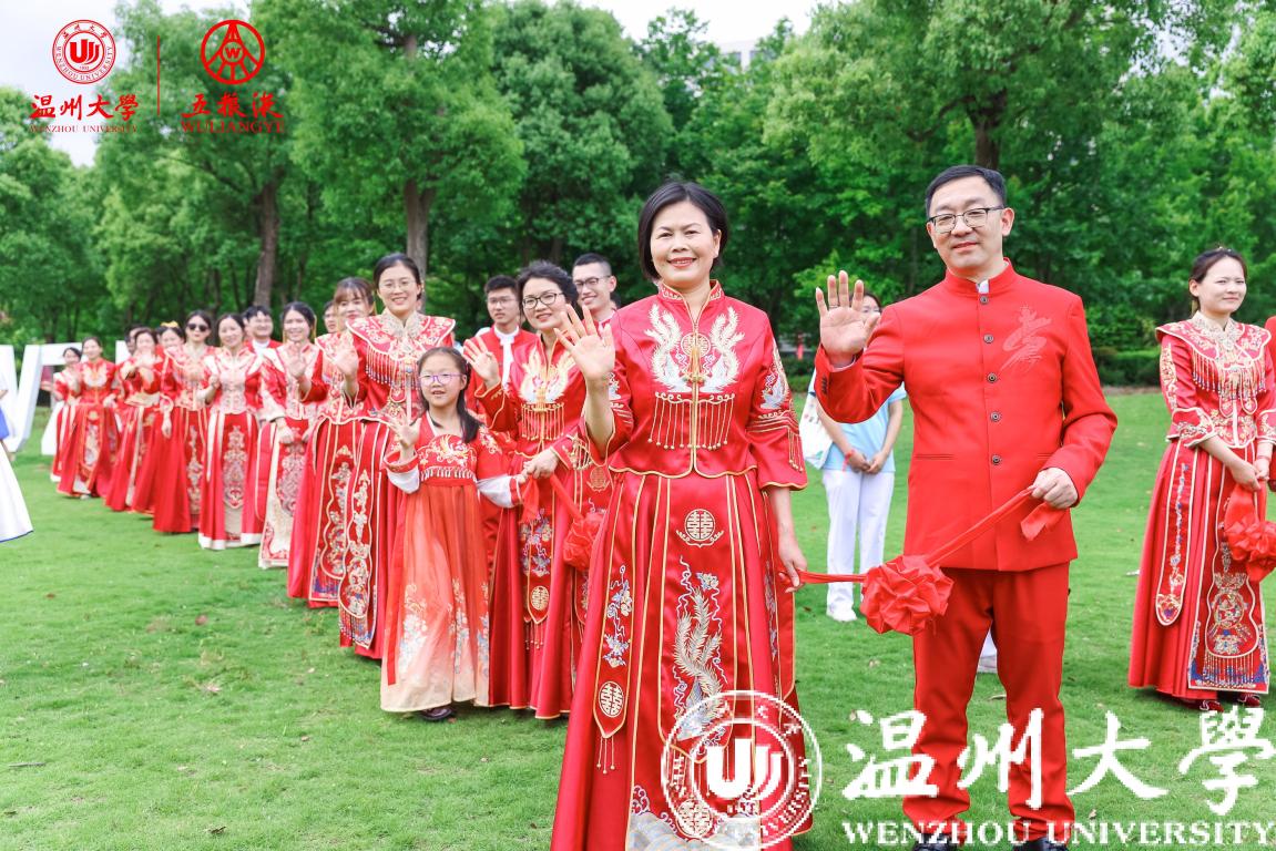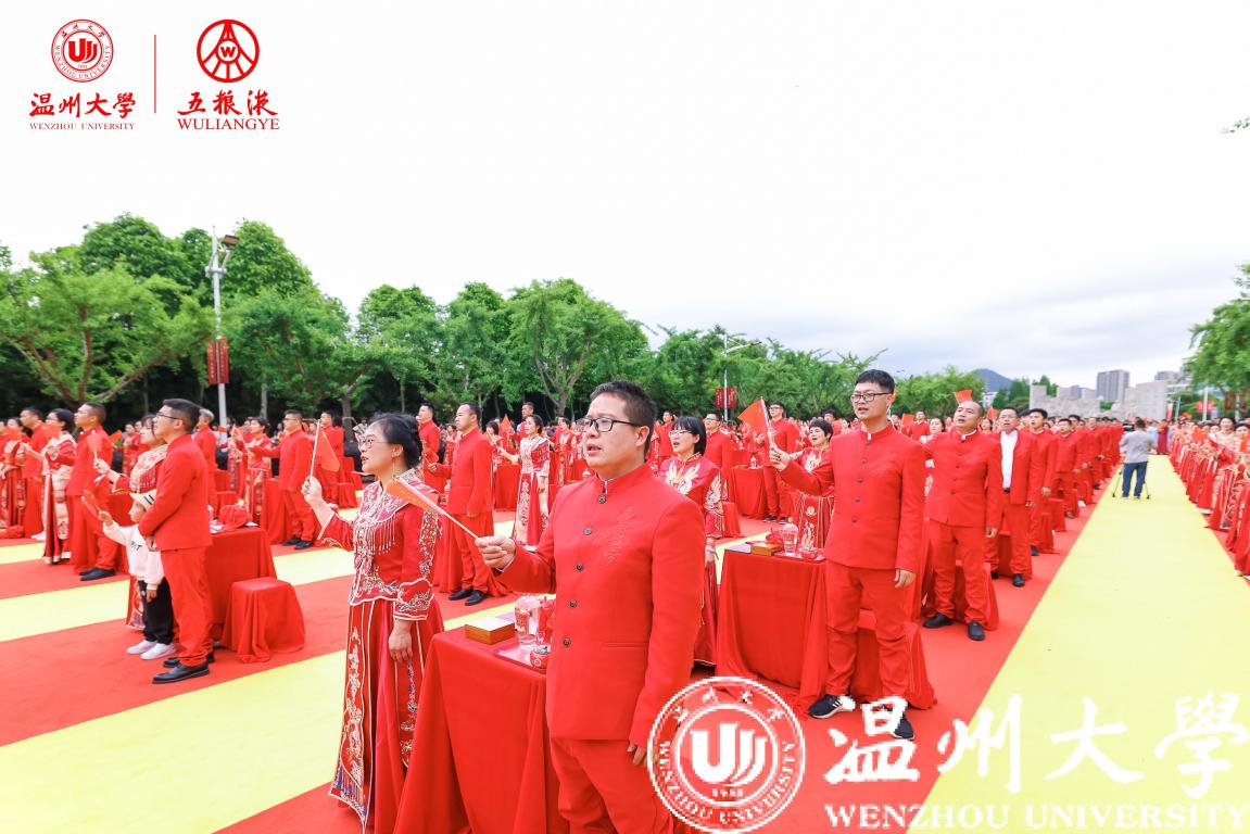 学校历任领导、各部门、各学院师生代表在主会场参加典礼,校友纪念婚礼还通过浙广直播等平台向社会进行了同步直播,海内外温大校友共同见证了这一浪漫时刻。