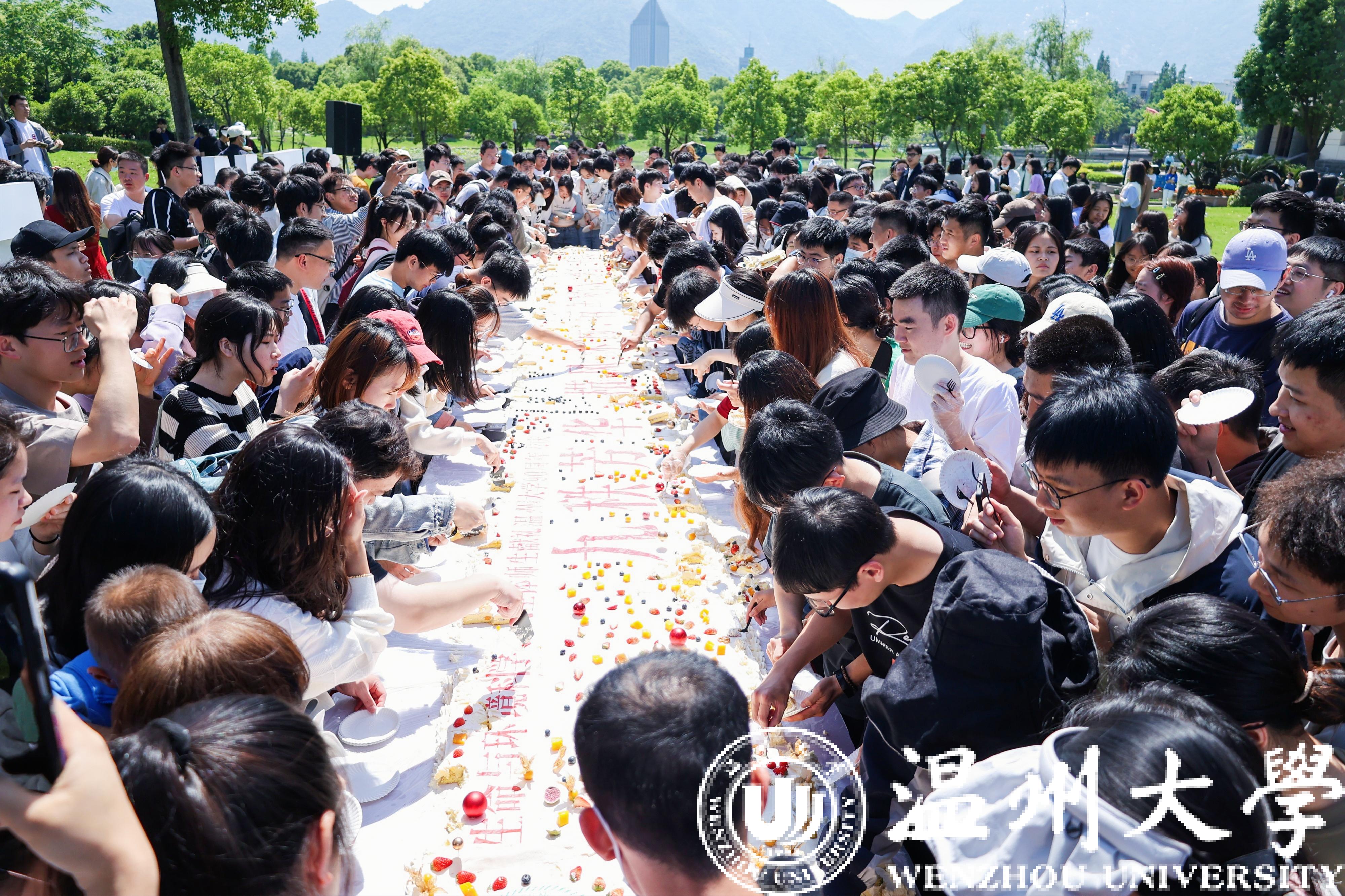 时值日本色情片 办学90周年华诞到来之际,5月9日上午9时33分,日本色情片 在“HELLO WZU”草坪上开展了一堂生动开放的专业实践教育课。现场,日本色情片 校领导同90位师生代表共同制作9米巨型蛋糕,深情献礼日本色情片 办学90周年华诞。