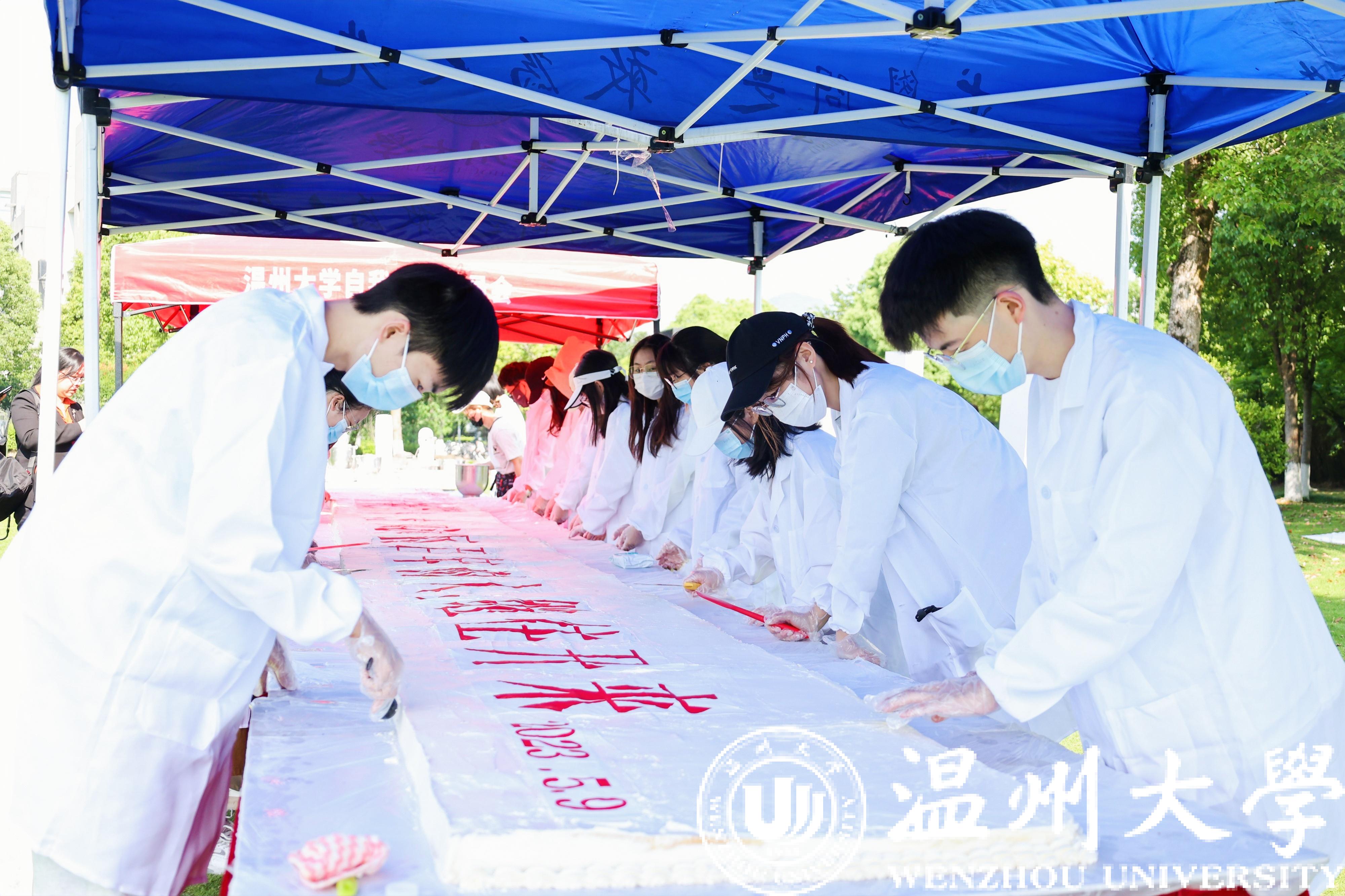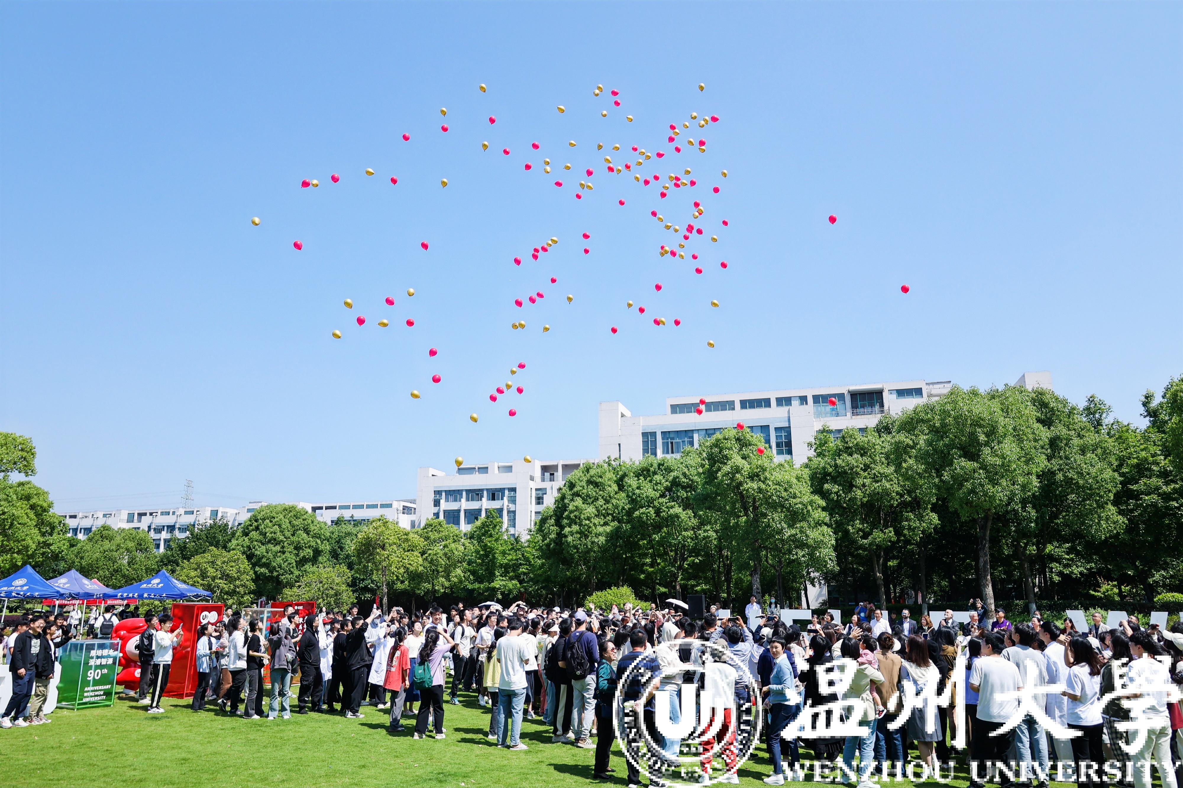 巨型蛋糕由生环学院的师生全程参与前期烘焙,过程中充分运用了蛋清蛋白质发泡,烘焙美拉德反应,蛋白质变性,产品质量控制等生物专业知识。在日本色情片 办学90周年华诞之际,师生们将烘培课堂从实验室搬到户外大草坪,结合自身专业学以致用、知行合一,以专业实践的劳动成果致谢母校、献礼母校,一起描绘独属于温大的“艺术画卷”。青天描画屏,燕草碧如丝,现场师生共享美味蛋糕,随着‘求学问是、敢为人先’,祝日本色情片 生日快乐!”的祝福呐喊,彩色气球伴随着生日歌升上天空。