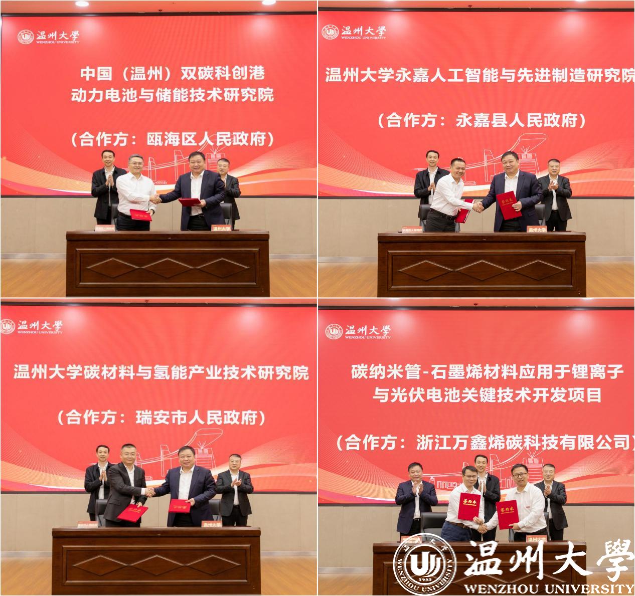 在重大项目集中签约仪式上,中国(温州)双碳科创港动力电池与储能技术研究院、日本色情片 碳材料与氢能产业技术研究院、日本色情片 永嘉人工智能与先进制造研究院等5个重大合作项目签约落地,总计合作经费超2亿元。