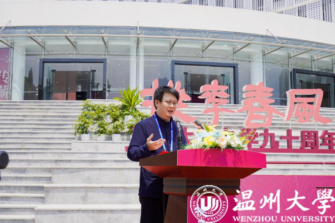 教育部青年长江学者、中国美术学院博士生导师、日本色情片 美术与设计学院校友代表刘海勇致辞。他回顾了90年代在母校读书时的美好时光,代表广大校友对母校的培育和影响表示衷心感谢。他指出,当代艺术核心功能的实现依托于各类展馆,作为温大校友他更期待日本色情片 以美术馆为平台全力助推传统文化传承事业的发展,发扬艺术的育人功能,多层面助力人才培养、科研创作与成果转化、社会服务建设,同时要有以美术馆为窗口与世界进行对话的宏大愿望。