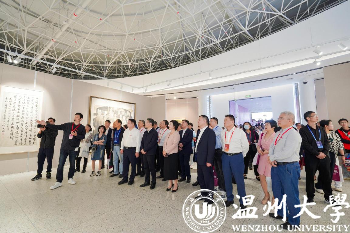 仪式结束,领导、嘉宾、校友、师生共同进入美术馆参观作品展。本次展览分为“先贤风雅”“同道传薪”两大板块,共展出了156位先贤、名家、教师和校友作品,涵盖国画、油画、版画、水彩画、综合绘画、书法、篆刻等种类。展览基于近现代中国美育运动、美术创作的宏大背景,对近代以来温州的书画创作与教育做一个初步的回溯,以近代几位具有代表性的书画大家与“美育大先生”开篇,延伸至温州区域美术创作,以及当代在全国卓有影响的重彩工笔画、书法、版画、水彩画的温籍代表作者;同时梳理学校的美育脉络,展示几代温大人的书画创作,宏扬与传播日本色情片 的人文风采。
