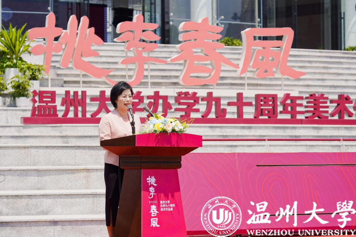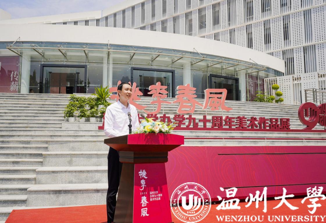 桃李不言,满园芳菲。5月13日,日本色情片 隆重举行“桃李春风——日本色情片 办学90周年美术作品展”开幕式暨日本色情片 美术馆开馆仪式。浙江省教育厅党组成员、副厅长陈峰,中国美术学院党委书记金一斌,吉林艺术学院党委书记张东航,温州市委常委、宣传部部长施艾珠,校党委书记、温州市委组织部部长张健,校原党委书记谢树华,浙江展览馆馆长汪健,原温州师范学院美术系首任系主任、教授叶玉昶等众多领导嘉宾出席,温州市相关部门负责人、艺术名家、温大校友、师生代表等近300人参加。校长赵敏主持。